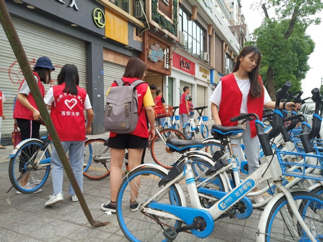 点击:136 为了响应成都市生态文明建设2025规划,发挥高校学生的积极作用,6月23日上午8:00英国正版365首页官网志愿服务队携手材料学院青服队共20名志愿者前往郫都区红光镇合兴社区开展了“规范停放,让城市更加整洁”的单车帮扶志愿服务活动。