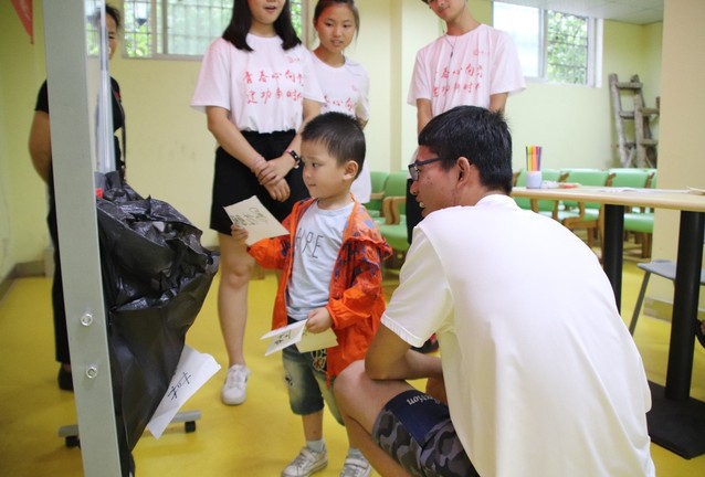 首先,三下乡队伍队员孟海勤带领小朋友们进行了“你划我猜”的热身游戏,让场上的气氛逐渐变得活跃起来了。接下来,三下乡队伍队员陈加英给大家讲解垃圾分类(为什么要垃圾分类以及怎样垃圾分类),对此,小朋友们积极学习,很快便熟练掌握了如何垃圾分类,并在之后的有奖竞答环节上积极回答问题。