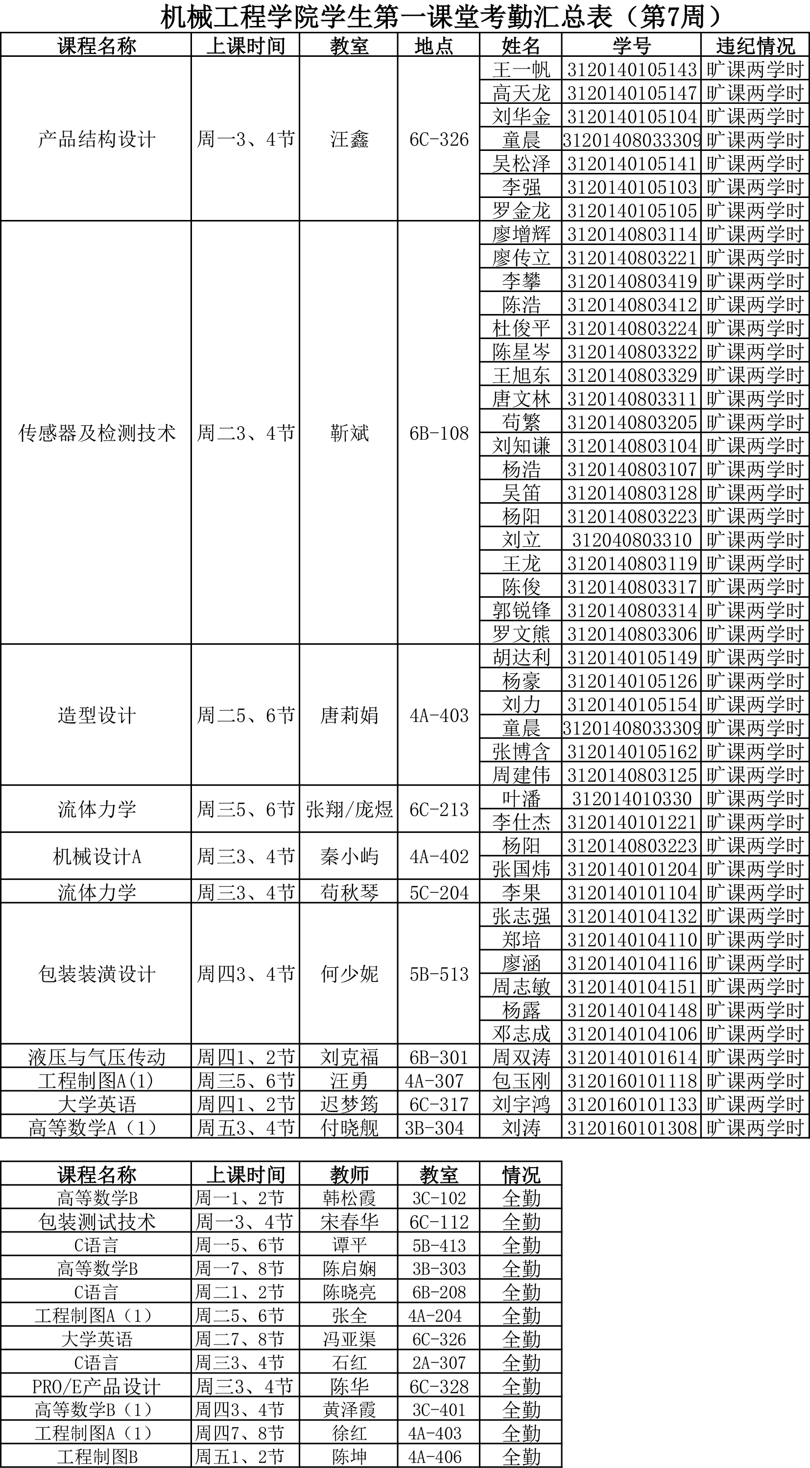 【考勤公示】第七周 学院学生第一课堂考勤公示