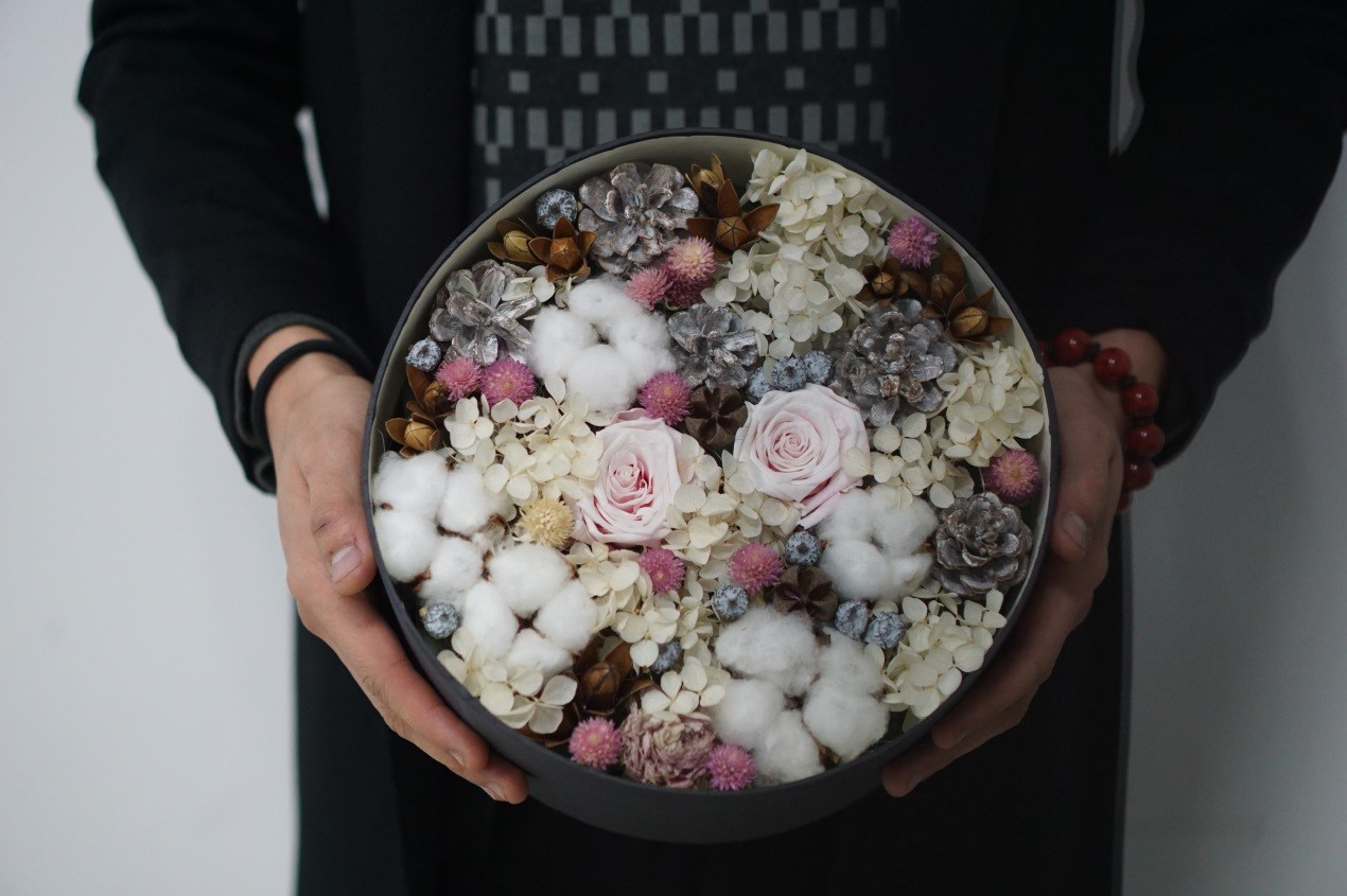 知博物馆花艺工作室致力于研究如何通过花艺的介入,让生活在水泥森林中的现代人重新找到与自然和谐相处的路径,构建一种更加绿色的、充满植物与花的未来生活方式。依据自身的价值取向和大量的市场调研,我们将主要目标客群准确的定位于中端市场上,以现代独创性的干花产品作为主要产品,经营模式方面,采用线上消费为主,线下实体展示、体验为辅的方式,以达到良好的边际效益及推广作用。