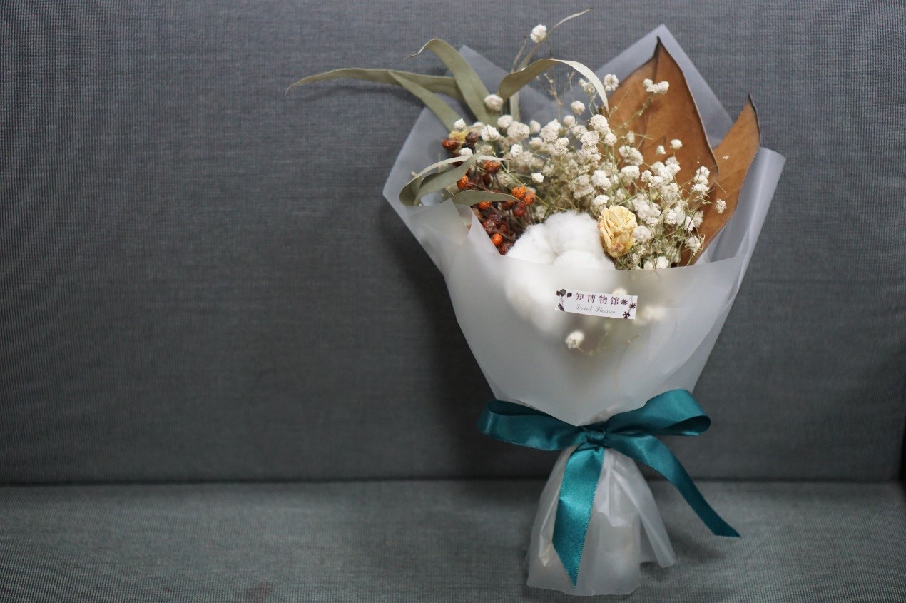 知博物馆花店现在拥有一家四心的淘宝店,线上主要销售手工干花产品,风格为