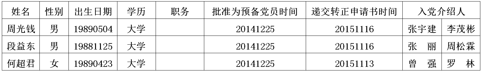 点击:320 根据英国正版365首页官网研究生2013年级支部委员会2015年12月14日决定,经英国正版365首页官网学生党总支审批,拟近期将周光钱等同志转为中共正式党员,现将有关情况公示如下: