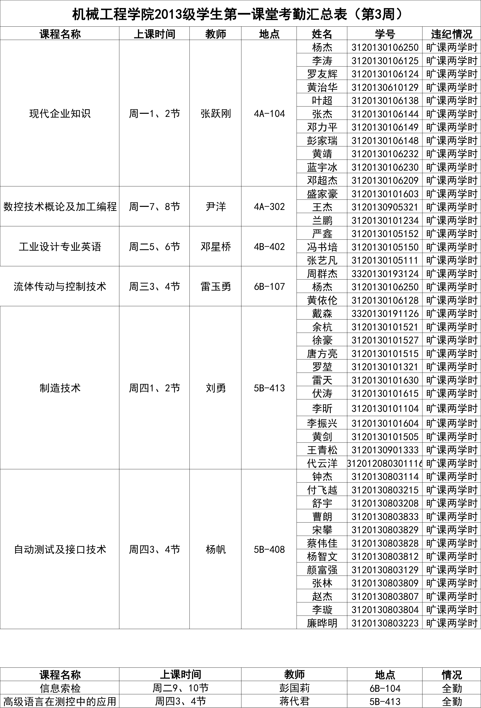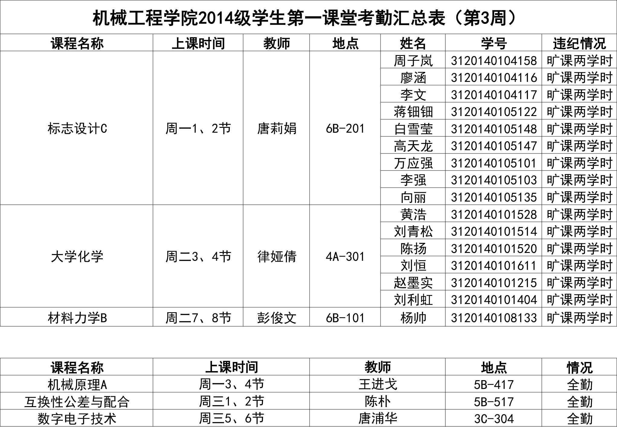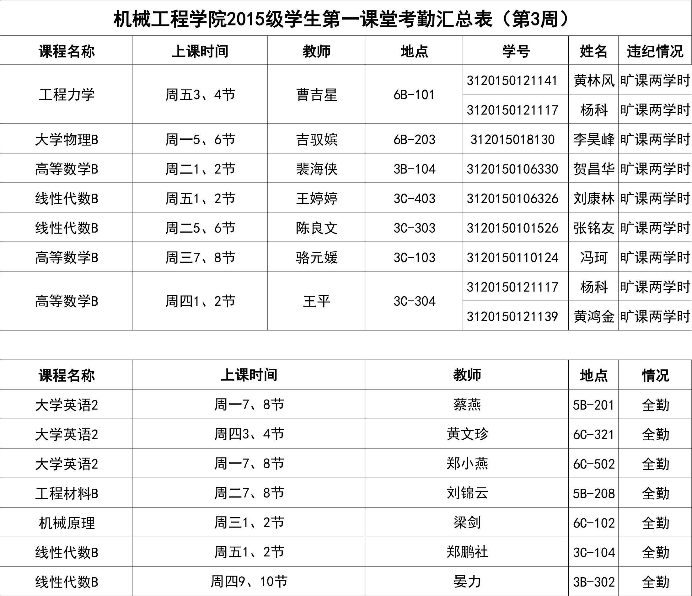 经学院学生党务工作站和团委、学生会对学生第一课堂出勤情况的考察,现将学生第一课堂(第三周)的出勤情况公示如下: