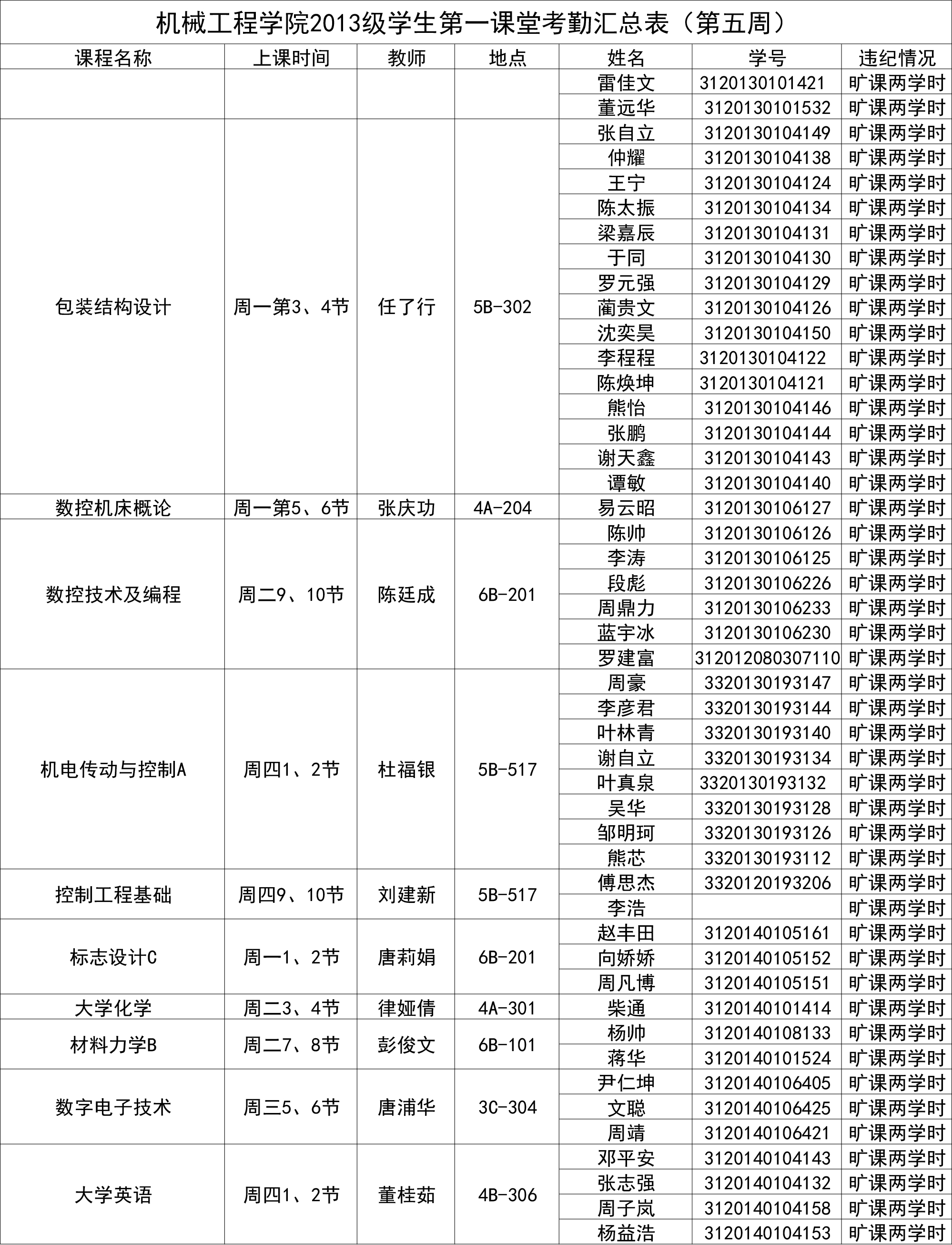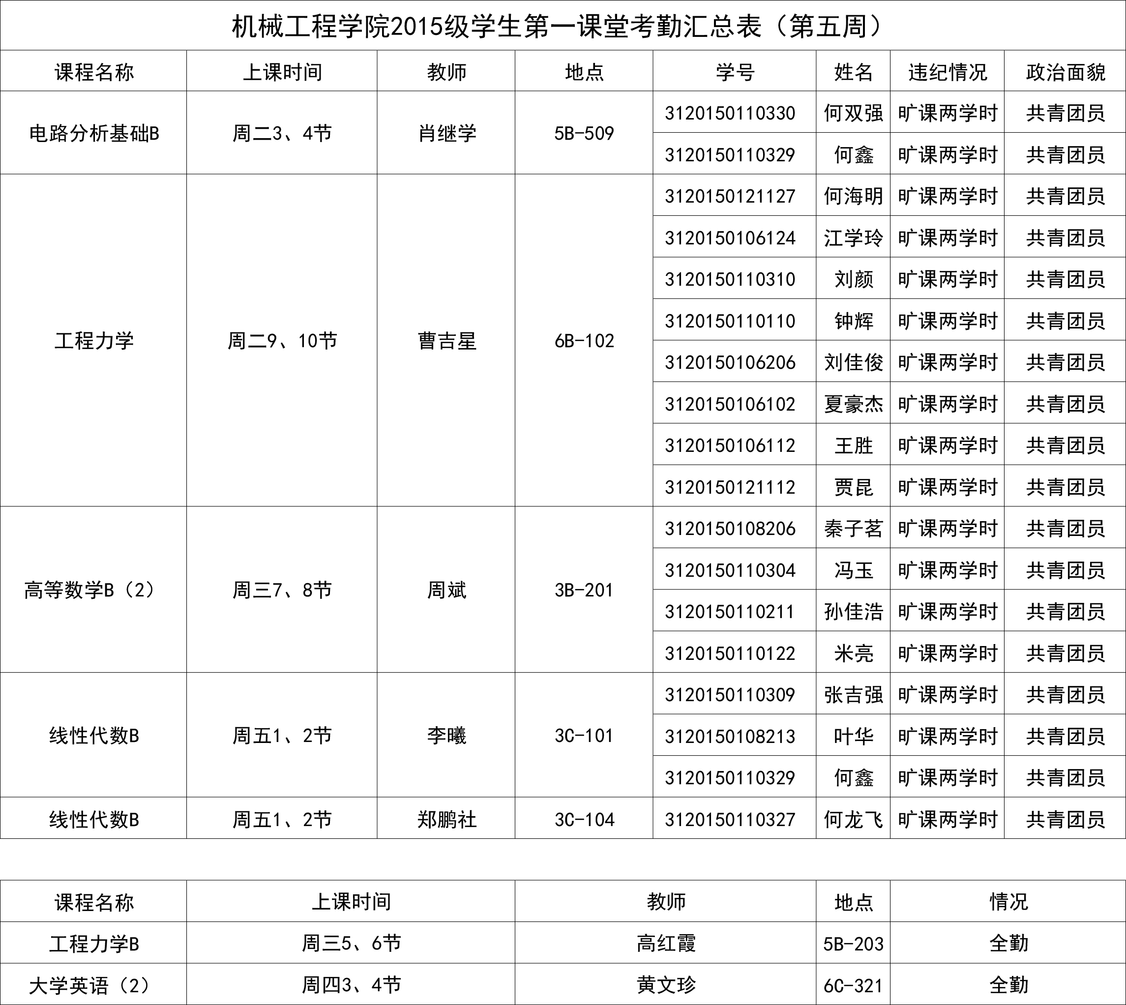 经学院学生党务工作站及团委、学生会对学生第一课堂出勤情况的考察,现将学生第一课堂(第五周)的出勤情况公示如下: