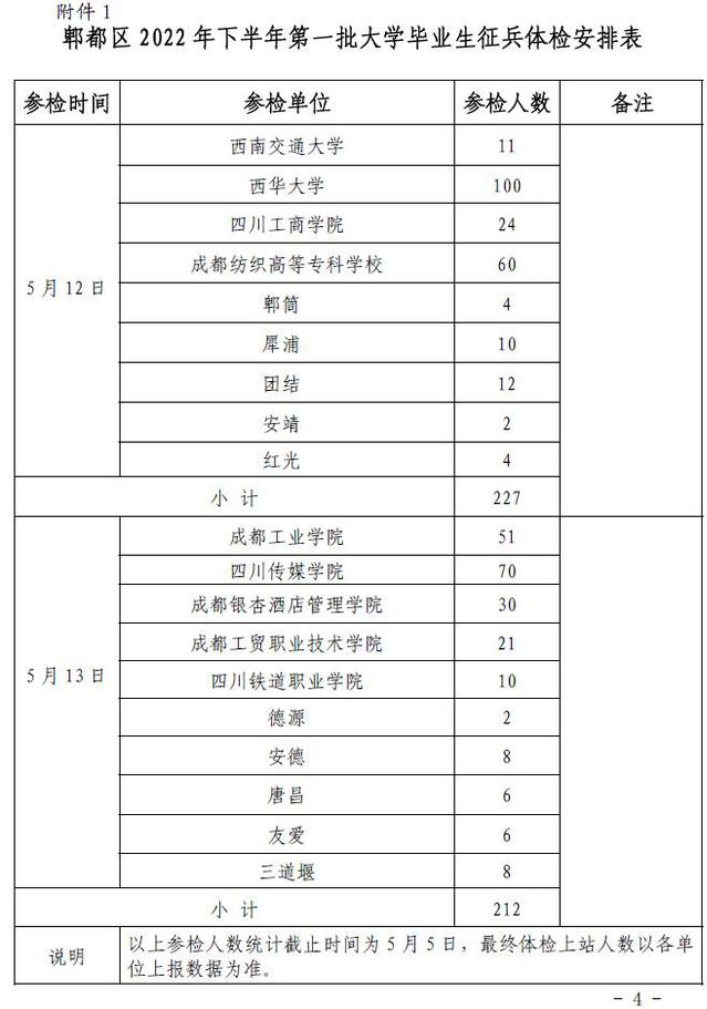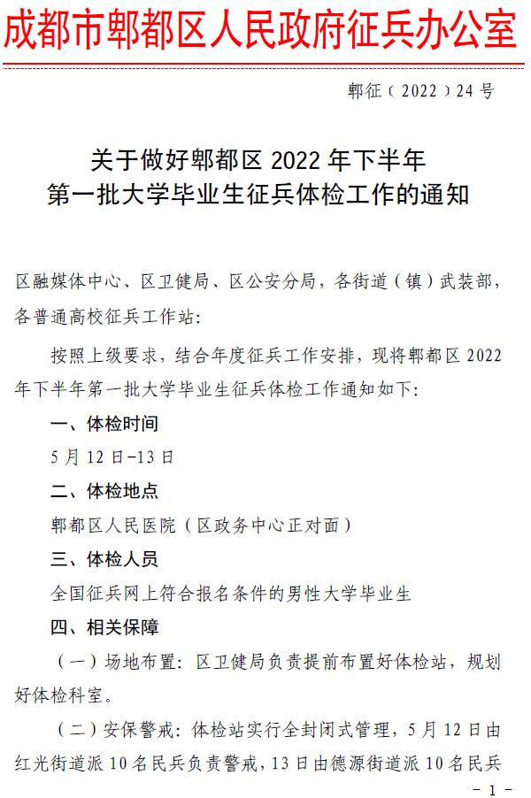 关于做好郫都区2022年下半年第一批大学毕业生征兵体检工作的通知