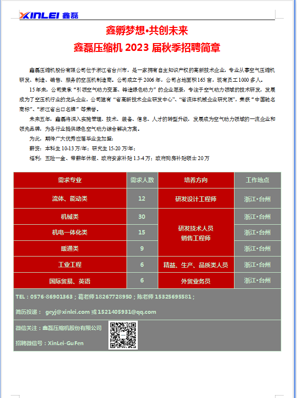 【专场招聘+网投】温岭市鑫磊环保设备有限公司