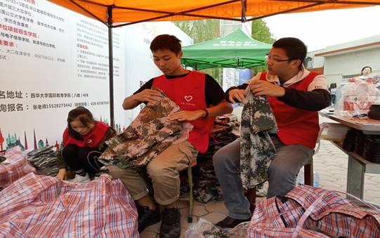 9月26日到28日,英国正版365首页官网实践部在西华大学校本部开展了军训服义捐活动,本次志愿活动由机械学院团委学生会实践部和电气与电子信息学院青年志愿者联合会共同主办,学院的26名志愿者参加了此次活动。