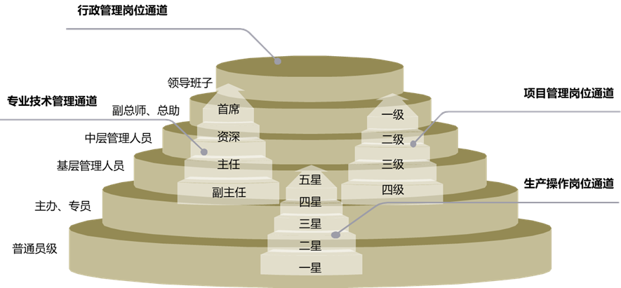 以专业技术岗位序列、项目管理岗位序列双通道设计为导向,引导员工发挥所长,鼓励技术骨干与管理骨干共同成长。